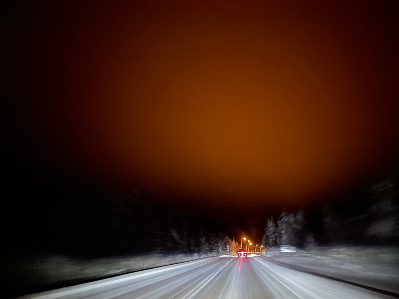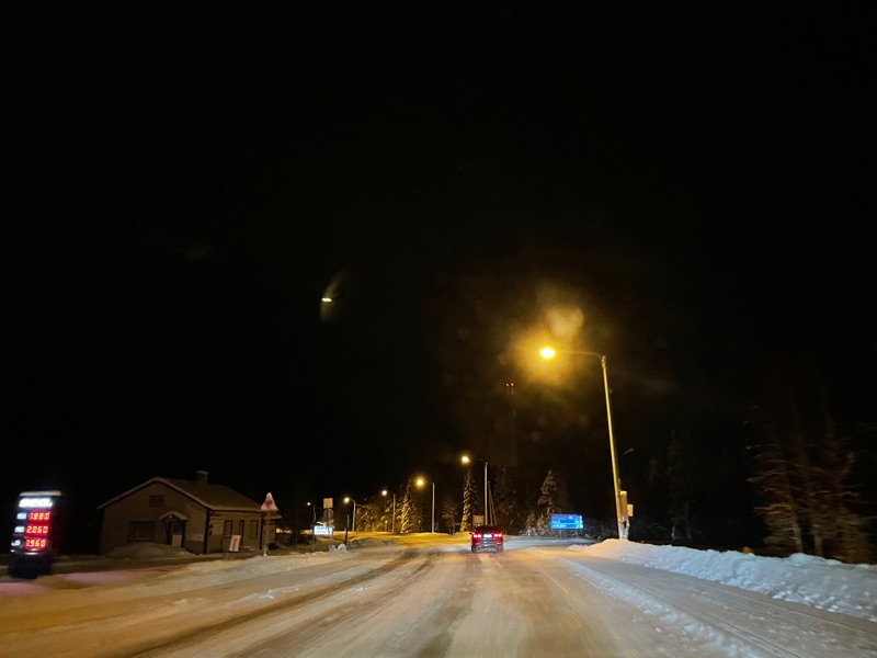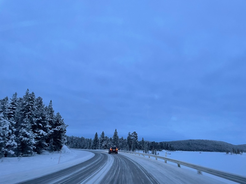 好不容易拿到租車,才發現大家的車不是Volve xc60就是Benz glc300,我們拿到的是Kia (眼神死)一發動引擎胎壓警示燈就亮了,到還車前就沒熄過。接下來就是5個小時一路向北(極圈)奔騁。感謝 Kia 時不時讓我們體驗一下頭文字D飄移的快感! (其實路況算好開 但只要會車時稍微偏移前車胎痕馬上就會往右打滑)