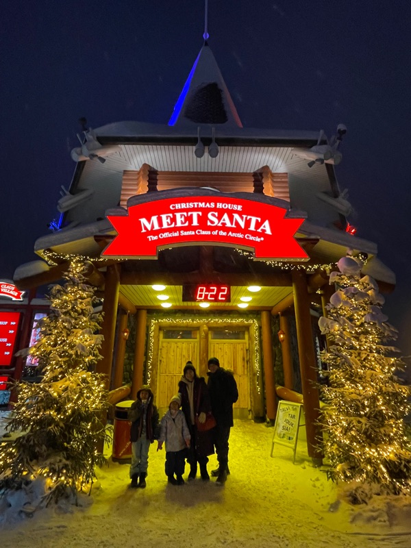今天的重頭戲就是到聖誕老人村拜見這位舉世聞名的老先生啦! 其實光聖誕老人村就有2位,我們去的是Christmas House the Official Santa Claus of the Arctic Circle。另一位則是在聖誕老人辦公室。稍微排隊等候一下,聖誕老公公就親自開門和我們寒暄閒聊。最後不免俗地來張合照。雖說來此之前覺得體驗一下就好,照片也不用買了(一張50歐而且沒有電子檔) 結果沒想到一看到印出來的照片,大家就默默地把卡片掏出來。還好我們的哈啦大神Kevin和收錢的小妹抬摃了幾句,不知道是不是因為社恐的北歐人怕我們還要繼續聊下去,或是被Kevin的誠意打動,竟然幫我們打了九折,不無小補。