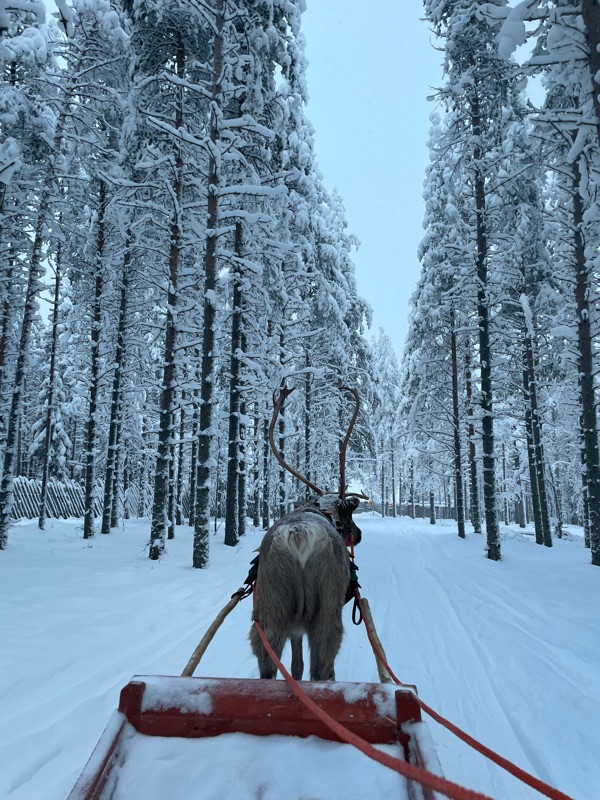離開前坐了1km馴鹿雪橇。大雪紛飛,馴鹿漫步,林中樹木無需特別裝扮就是一棵棵聖誕樹。 濃濃的節慶氣息和皚皚白雪讓人感覺整個園區就像個童話世界。雖說很多人詬病聖誕老人村過於商業化,我倒覺得不遠千里,不虛此行。
