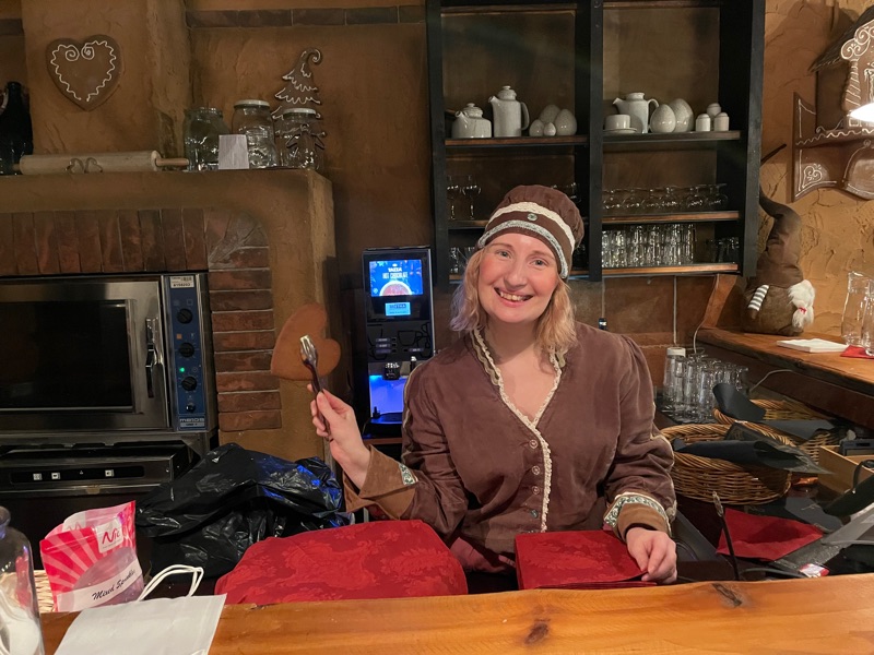 下午到離聖誕老人村西邊車程5分鐘的Santa Park繼續朝聖。這是一個建造在洞穴內的聖誕主題樂園,提供很多和聖誕節有關的遊戲手作表演。我們體驗了小精靈學校,裝飾比臉還大的薑餅愛心餅乾,搭乘Disney小小世界平替版的魔法火車,手作聖誕樹掛飾,披上防寒斗蓬參觀了獨特的冰宮,觀賞有點像太陽馬戲團的小精靈表演。最後在這裡可以隨意和聖誕老公公拍照留念,多拍幾張完全可以值回門票價。唯一可惜的是聖誕老公公捱到下午五點可能已經累了,有點語無倫次。