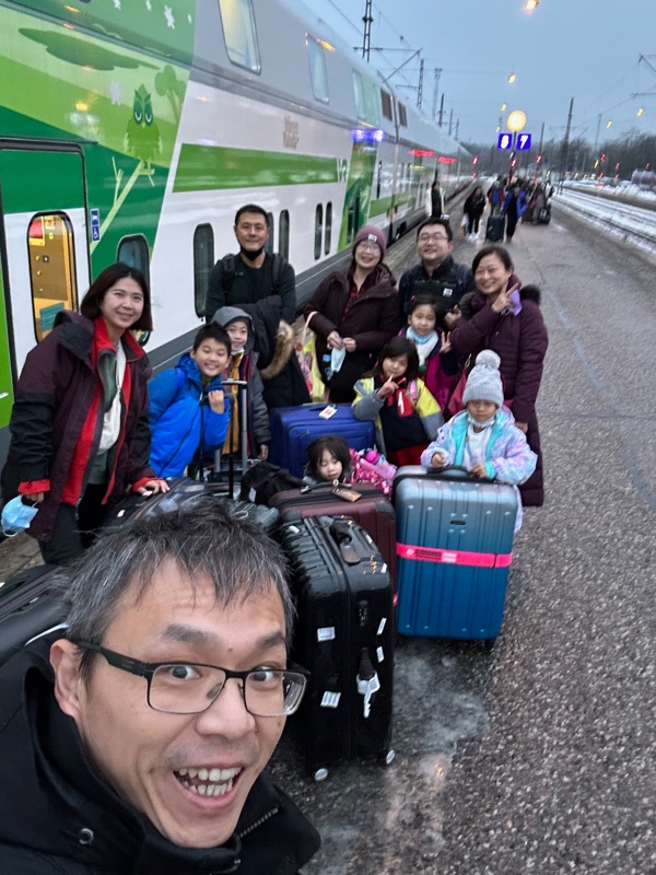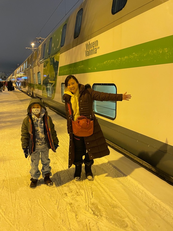 火車搖搖晃晃開了十幾個小時,早上9:15準時抵達Helsinki。臨下車前還發生了一個小插曲,我們幾家的房間都在隔壁,所以常常把房間門開著就在走廊上串門子。結果我的房門沒卡好直接關上,房卡也沒帶在身上,活生生被關在門外,魂都嚇飛了。重點是打從上車就沒有看過任何服務員。還好打電話到客服中心告訴他車號房號,十幾分鐘後就有車掌來開門了。順利拉行李下車,結束一場虛驚。