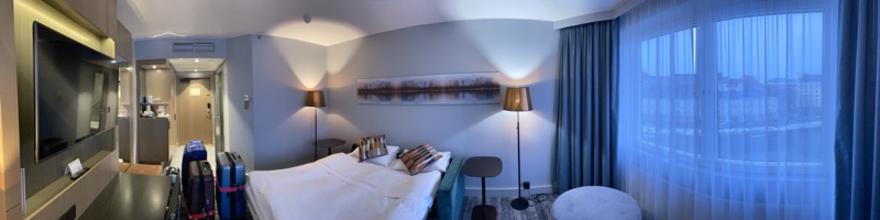 離開火車站,坐上地鐵到這兩天下榻的飯店Helsinki Hilton Strand。CI時被小小升等到面對運河的business king suite。其實就是兩間聯通房打通,客廳有張沙發床。感覺這間Hilton已經有點歷史,四處可見歲月的痕跡。