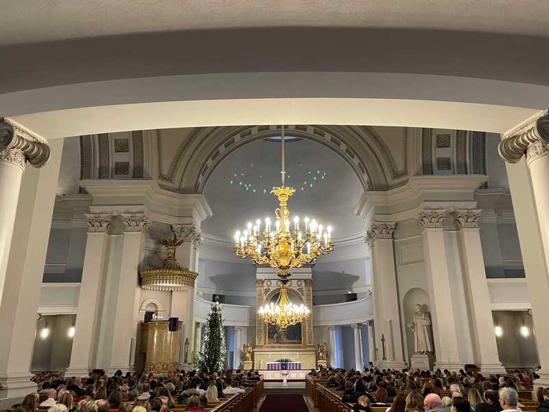 安頓好後馬上開始市區觀光,先到赫爾辛基最有名的地標,俗稱白教堂的赫爾辛基大教堂Helsinki Cathedral。進入教堂時剛好在唱詩歌,幾乎滿座,我們就沒有再往更裡面走了。金黃色的祭壇和講壇在純白牆面襯托下顯得高貴優雅,耳邊縈繞如聲樂演出的詩歌,即使語言不通,仍然可以感受音樂帶來的悸動。