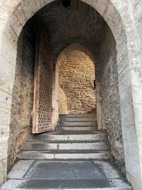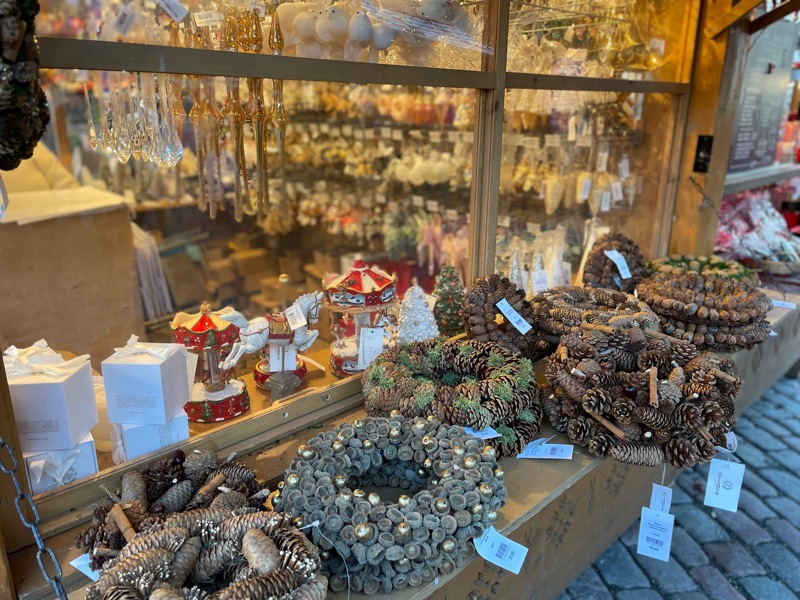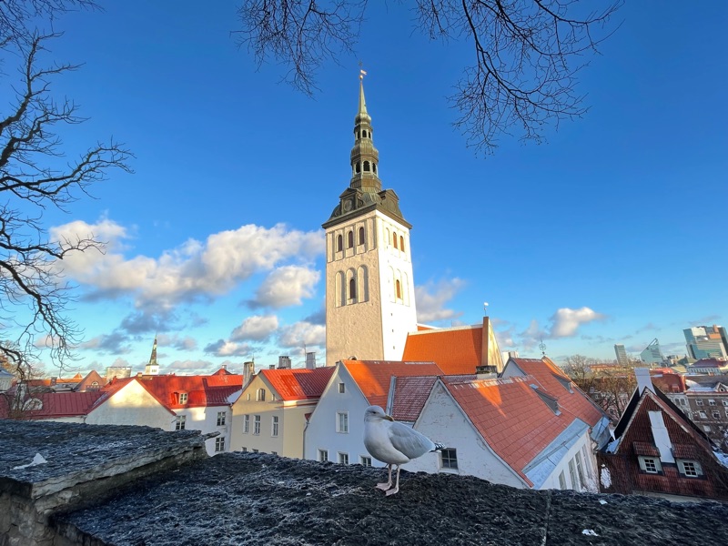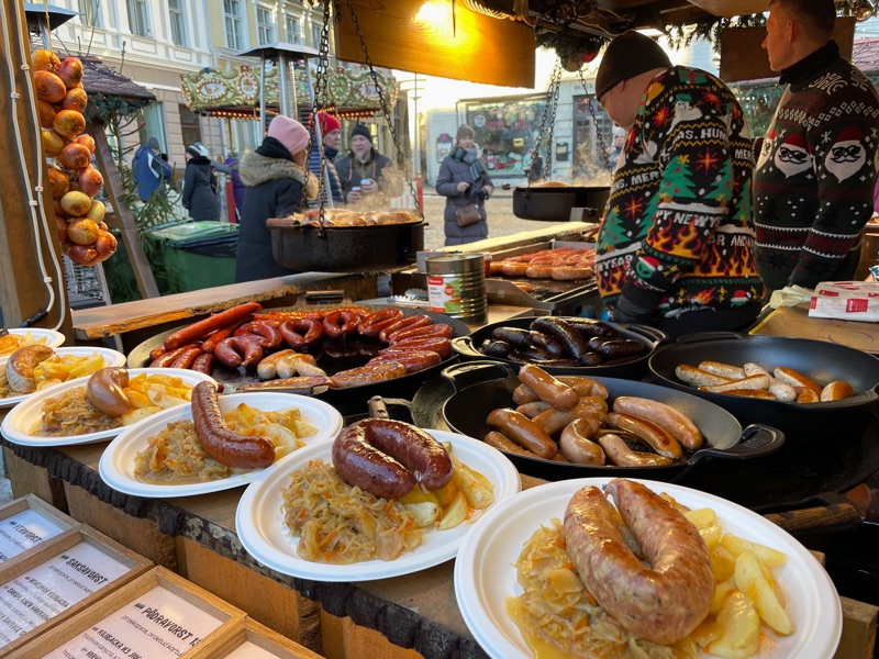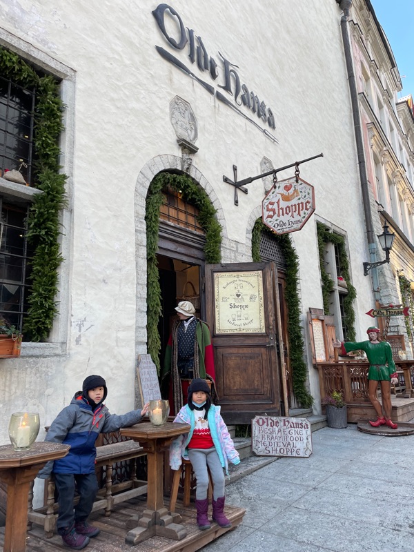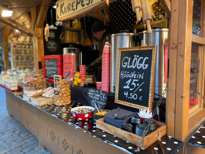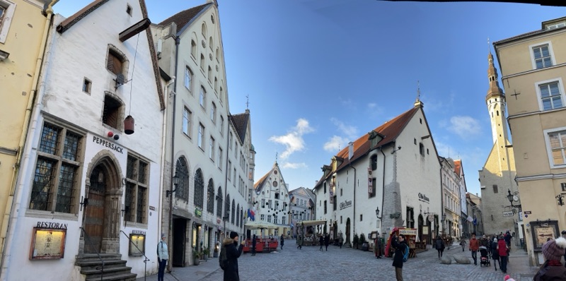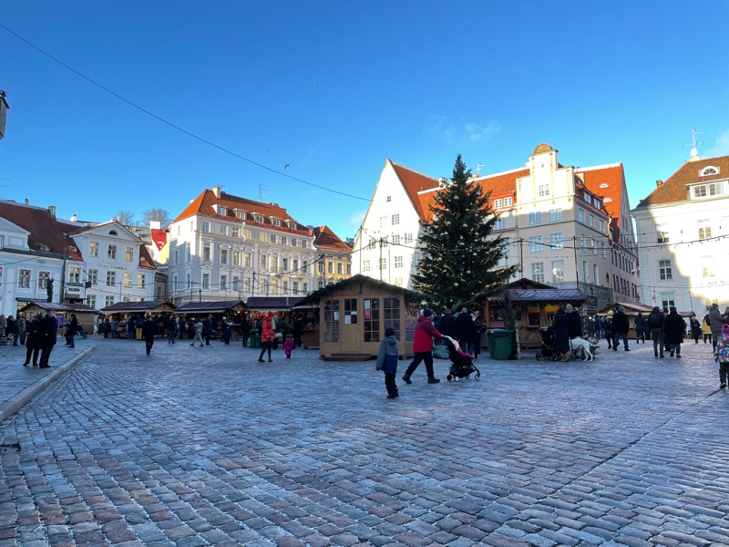 沿途漫步欣賞著塔林新舊建築交織的衝突美感,最後抵達viru gate 維魯門。成對的老城門建於14世紀,城牆便從此處延伸出去。今天是聖誕夜城門前的花店應景擺滿了紅紅綠綠的檞寄生。沿著維魯街往市政廳廣場走,兩旁都是鱗次櫛比的餐廳酒吧紀念品店。今天的市政廳廣場有聖誕市集加持,顯得格外熱鬧。熙來攘往的人們,令人食指大動的特色小吃和熱果汁熱紅酒,空氣中歡欣洋溢,這個時節來歐洲真的很有過節的氣氛!