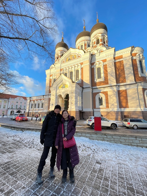 穿過花園旁的小巷弄繼續往上走就來到塔林最大和最高的圓頂東正教堂: 亞歷山大·涅夫斯基主教堂。5個黑色洋蔥穹頂搭配金色雙十字尖頂,外牆上有許多精美的浮雕和細節裝飾,充分展現華麗宏偉的風格。