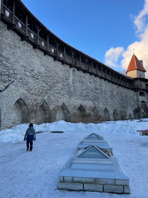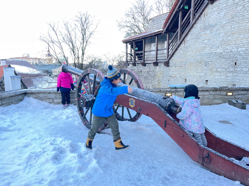 波羅的海三小國之一的愛沙尼亞,因往返赫爾辛基的渡輪班次多且固定,不少到芬蘭的遊客都會順道一遊。清晨6:30一群人睡眼惺忪抵達渡輪大廈,準備搭乘7:30的船班前往愛沙尼亞首都塔林。今天搭乘的是Tallink Silja Megastar。這艘渡輪可載2800名遊客,也能運送車輛。下船時拍到車輛魚貫駛出的畫面,船腹之大令人咋舌。餐廳及商店集中在8、9層,我們在第9層餐廳附近坐下。小朋友們吃完飯店提供的早餐(順便吐槽一下 Hilton Helsinki 的brown bag breakfast真的很讓人無言。又乾又扁的三明治,連片火腿也沒放,看了都有點倒胃口) 馬上直奔兒童遊戲室。媽媽們休整後到甲板上吹風,但是實在太冷太溼,草草照幾張相就逃回溫暖的船艙。航行大約兩個小時左右就抵達了今天的目的地塔林。
