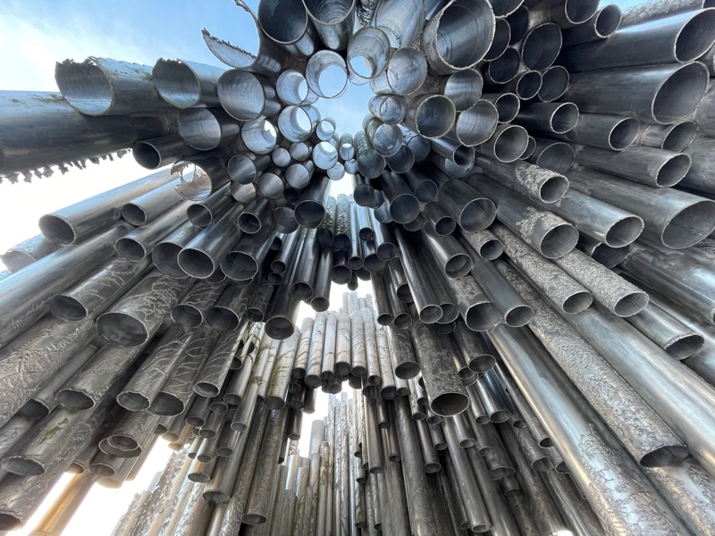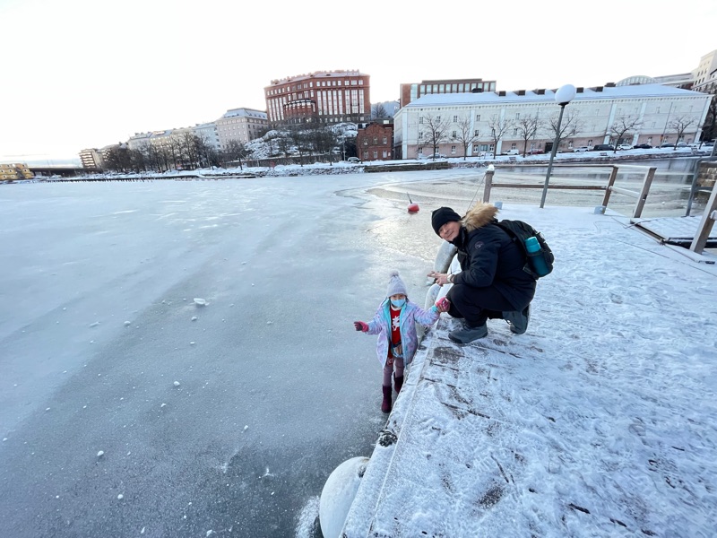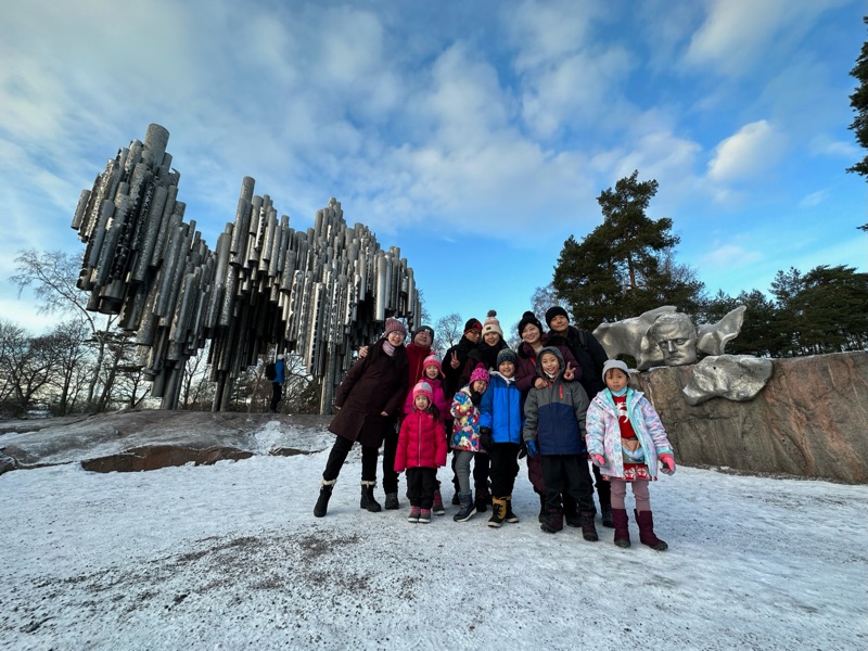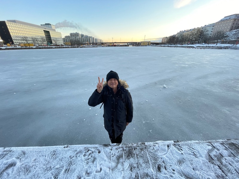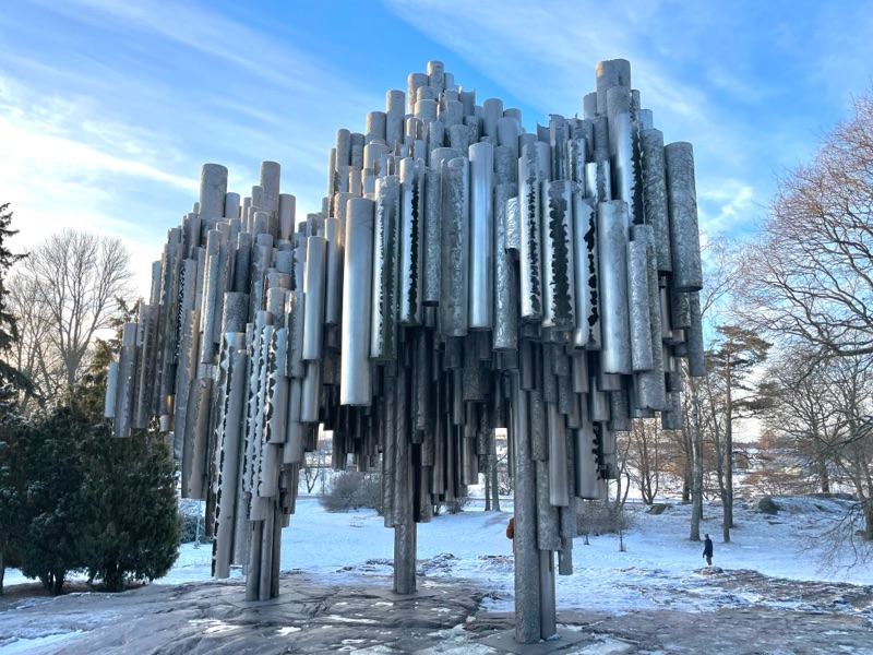 今天是移動日,傍晚要搭渡輪到瑞典首都斯德哥爾摩,白天決定到遠一點的西貝流士公園(Sibelius Park)走走。走出飯店發現對面的運河全部結冰了。一群人在運河旁上上下下玩了一陣子才出發前往公園。公園內有一座名為Sibelius Monument的雕塑,是為了紀念芬蘭作曲家Jean Sibelius而建造的。紀念碑是由芬蘭雕塑家Eila Hiltunen創作的,它由近百根空心鋼管和一塊基石組成,呈現出一種流動的音樂感。
