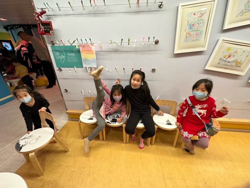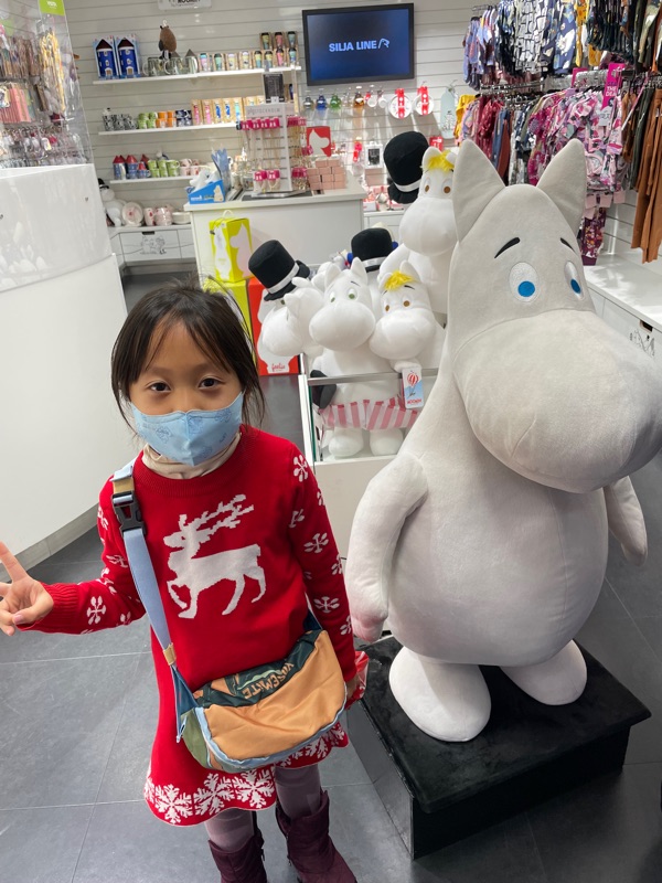 安頓好行李便到7樓最有名的北歐大道Promenade商店街閒晃。商店街的前段有販賣各類商品的百貨服飾及禮品店。通過中央電梯處的後段區,則以各國美食餐廳為主。其中最吸睛的大概就是Moomin禮品店了。店內不僅販售Moomin商品,還有色彩繽紛的芬蘭國寶品牌Marimekko。不過這些小孩們都沒有看過Moomin的卡通,所以再可愛他們都無感,直接整隊到5樓兒童遊戲室放生。