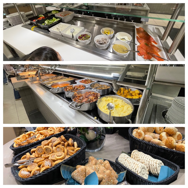 第二天的早餐在6樓的Grand Buffet。當初買船票時直接加購早餐:大人€15,小孩€5。品項跟一般歐陸早餐差不多,選擇不少,還有各種口味的植物奶。只是咖啡超級淡,完全沒有醒腦的效果。早餐後沒多久就靠岸了,我們來到此行的第三個國家-瑞典。