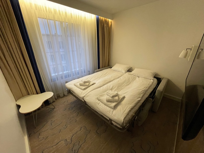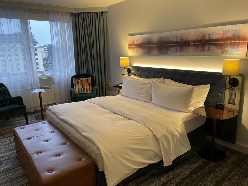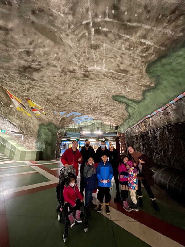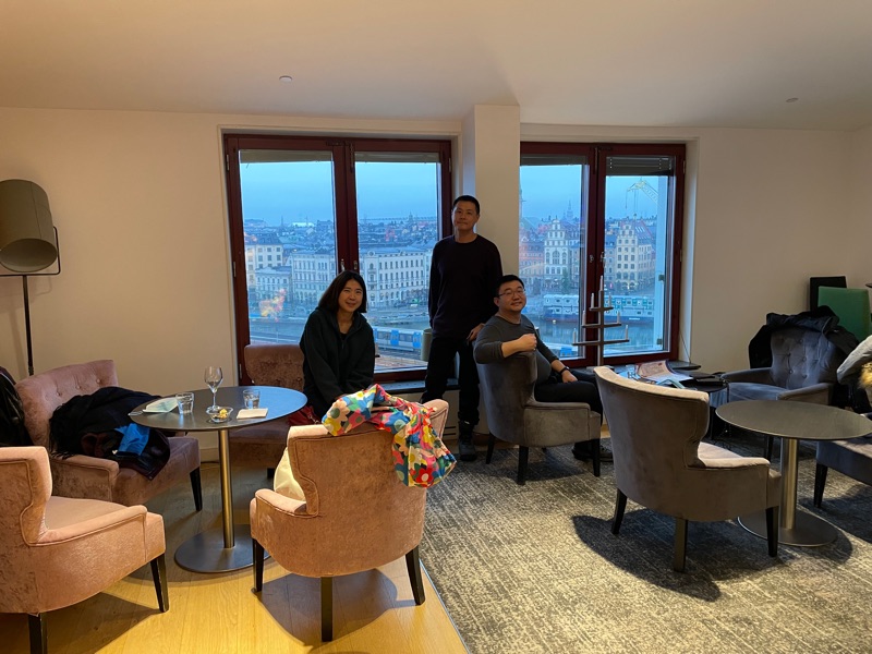 下船後一群人夯不啷噹拖著行李往飯店移動,天氣陰雨綿綿加上高低起伏的地形,不知爬了幾個好漢坡才終於走到紅線地鐵站Gardet。折騰半天後抵達這幾天下榻的飯店 Hilton Stockholm Slussen。這間飯店對家庭遊客很友善,等待時給小朋友著色紙和糖果殺時間,橘子和薄荷口味的糖果都清新好吃。櫃台的小哥check in時還開玩笑說從來沒一次看到這麼多Diamond member 😂 我們訂的房型是家庭房,除了king size的床外還有一個小客廳鋪了張沙發床,空間很寬敞。浴室應該剛翻新過,全大理石感覺氣派。把行李放回房間後我們立馬到executive lounge回血,在lounge蘑菇一陣子後正式開始今天的行程。