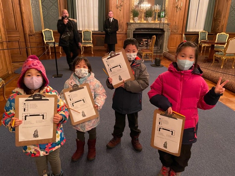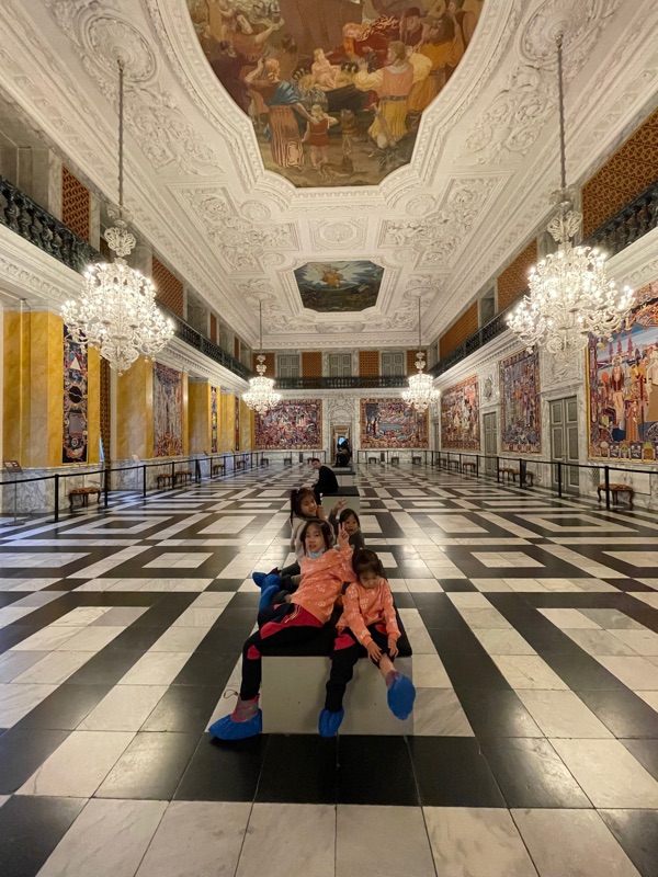 出來後拐個彎走到正門,皇宮外面看起來很壯觀很方正,但沒有特別華麗的感覺。而且天色漸暮, 反而平添些蕭條冷清的氛圍。皇宮內部擁有超過600個房間,某些部分開放參觀,展示了許多古董傢具、藝術品和裝飾品。皇宮在特定節日時會為兒童舉辦特別的活動,我們參觀時就有尋找goblin地精的遊戲。小朋友們拿著尋寶圖興致高昂在每個房間搜尋goblin的蹤影,走上走下聚精會神完全不會喊無聊。完成後還可以兌換一個小紀念品,真的是寓教於樂的好方法。