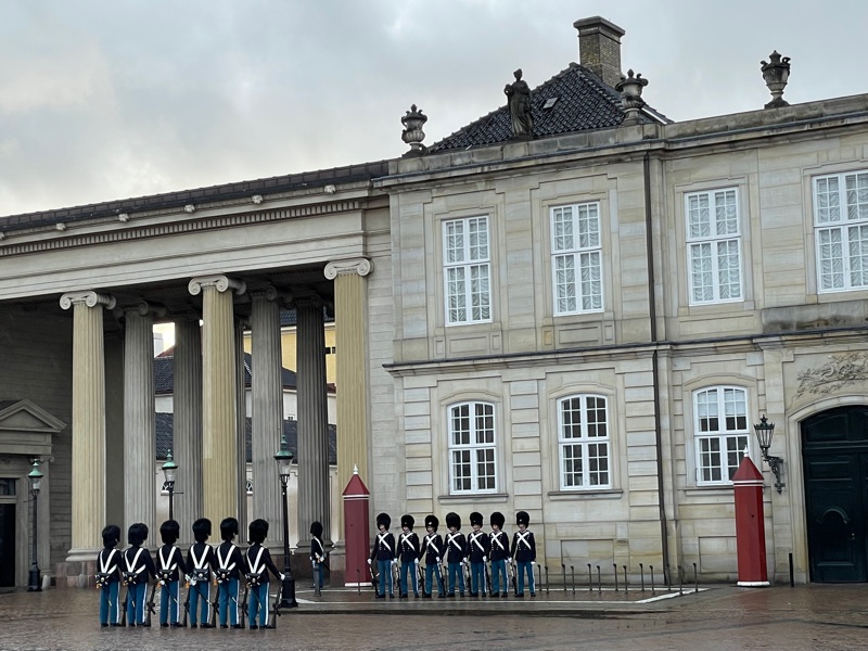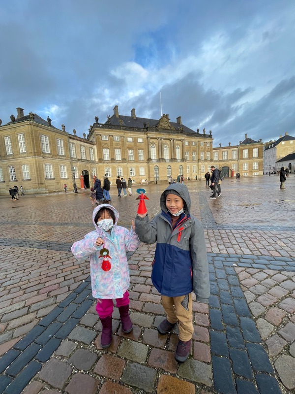 早上搭地鐵來到腓特烈教堂,教堂因大量使用丹麥和挪威出產的大理石,又名大理石教堂。圓頂建築宏偉大器,據說圓頂的靈感來自梵諦岡的聖彼得大教堂。接下來慢慢往amalienborg皇宮移動,丹麥的皇宮比起瑞典的金碧輝煌許多。進去沒多久發現有小朋友手工藝活動,馬上決定把小孩全部丟包在此,派爸爸們看守。媽媽們繼續前進讚嘆皇室的財大氣粗。中午12點時大家在廣場集合觀看衛兵交接,動作一絲不苟,整齊劃一,很有可看性。