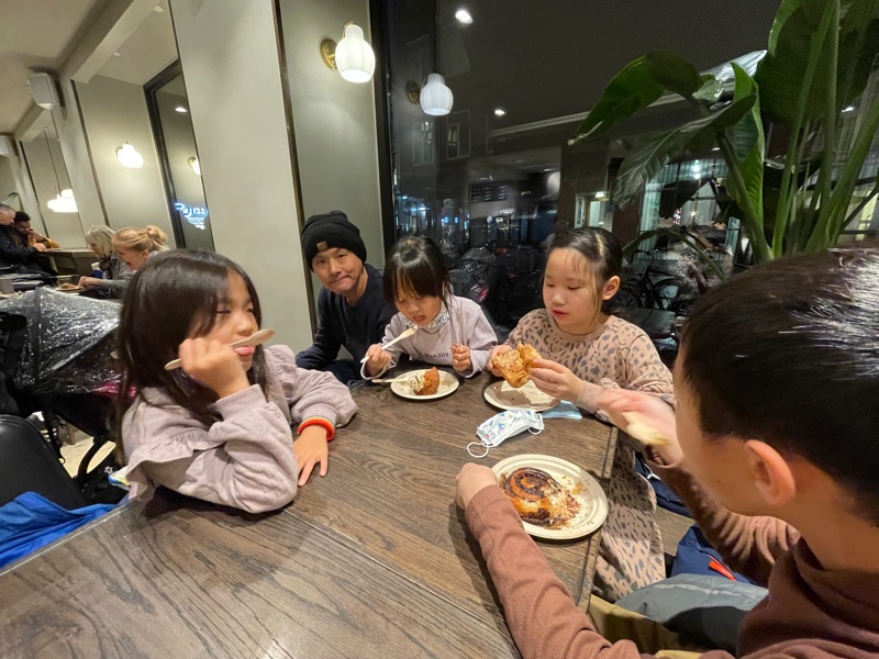 到達今晚住宿的公寓已經7點了。大家決定趁有洗衣機時把衣服洗洗,再開車到外面的洗衣店烘乾(對公寓裡只有洗衣機沒有烘乾機。這是什麼操作?) 洗衣店在一個大賣場minimani邊上,爸爸們負責牽制小孩,媽媽們到商場採買。買了一些Moomin的小餅乾 (回到美國才發現草莓口味意外的好吃),芬蘭Frazer巧克力和一種像金色覆盆莓的優格。芬蘭的牛奶和奶製品有種特別的奶香味,清爽好吃。熱食區還有提供現做壽司,出乎意料的美味。出國總喜歡逛逛當地的超市,看看當地人買什麼吃什麼,感覺特別接地氣。