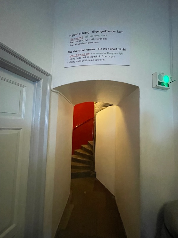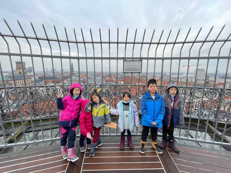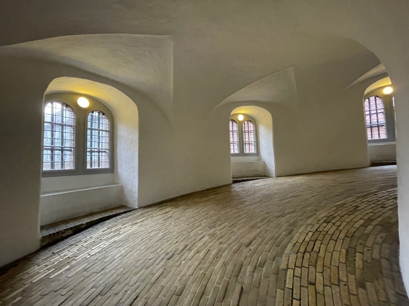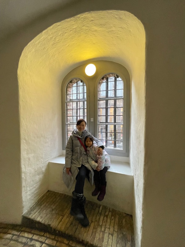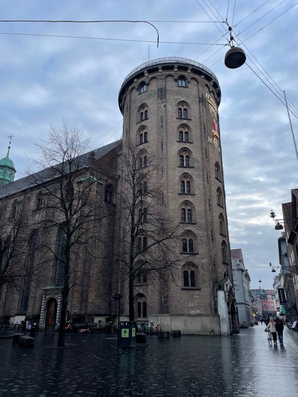 一早來到哥本哈根圓塔 它最初是作為天文台而建造的,如今則是一個擁有獨特的螺旋坡道聞名的景點。塔頂有一個360度觀景平台,可以俯瞰哥本哈根市中心的景色。平台正中心有一個陡峭的小樓梯,通往塔頂的展示台及舊式天文望遠鏡。參觀完後我們沿原路下塔,途中會經過紀念品店以及曾是一個丹麥國家圖書館的大廳,現則作為文化展覽場地。