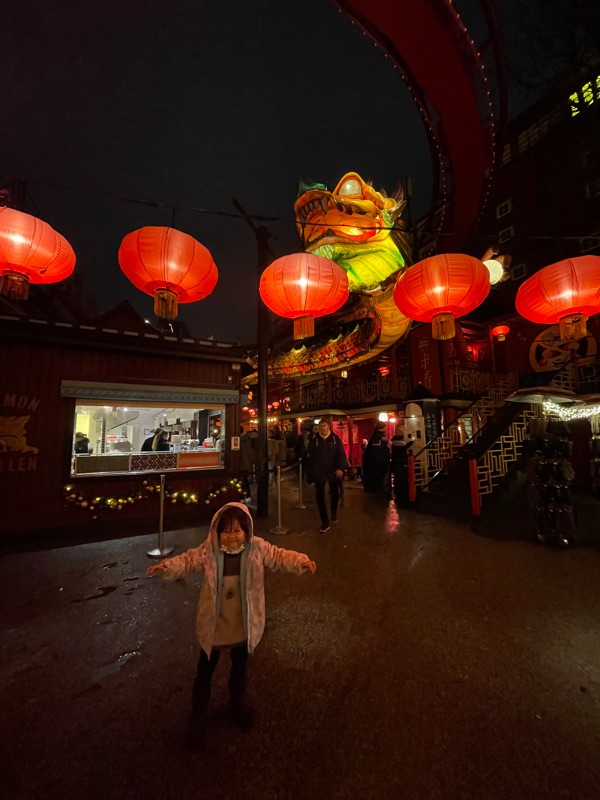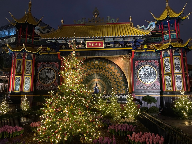 回飯店前順道經過哥本哈根最古老的遊樂園Tivoli Gardens,就位於市中心,緊鄰中央車站。園內有許多異國風建築、花園、劇院及遊樂設施。適逢聖誕新年假期,園內有許多應景的燈光秀及造景,讓人目不暇給。