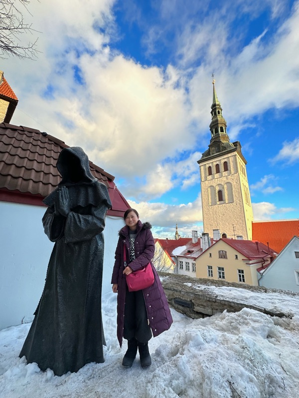 酒足飯飽後開始在老城觀光。塔林塔林 高塔成林 城如其名整座古城由鋪石的蜿蜒小徑圍繞著哥德式的高塔和紅頂房舍交織而成沿著古樸的石板路拾階而上,不一會便來到位於上城的丹麥國王花園 (Danish King's Garden)。根據一個古老的傳說,它是丹麥國旗 Dannebrog 的起源地。13世紀丹麥軍隊攻打愛沙尼亞的異教徒時戰況一度告急,突然一面帶有白色十字的紅旗從天而降。以此為聖兆,丹麥人被激勵著走向勝利。因此,丹麥國王對塔林和愛沙尼亞北部的統治持續了100多年。花園裡有三尊無臉的僧侶,據說有等待、祈禱以及守望的意思 (但我覺得它們比較像哈利波特裡的催狂魔啊)。
