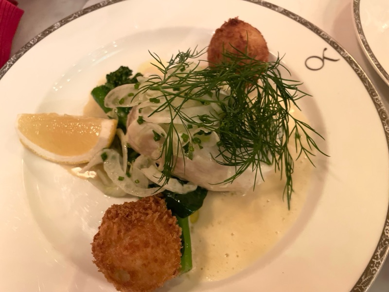 出站後便往今晚的餐廳Operabaren (The Opera Bar) 前進。不遠轉角處同集團的Restaurant Operakällarens是米其林一星餐廳。而Operabaren提供同樣高品質,但專注於傳統的瑞典美食,想當然爾這裡的必點菜色就是瑞典肉丸了。和Restaurant Tradition 相比,這裡的醬汁奶味非常濃郁,但不會膩口,有種帶氣泡的清爽口感。搭配扎實的肉丸和綿密的薯泥,相得益彰。另一道主菜點的是大比目魚佐青口醬,西蘭花和炸馬鈴薯丸。魚排鮮美彈牙,醬汁一樣豐滿卻輕盈。剛點完菜的時候服務員會上一籃麵包讓客人選擇,真是恨不得每種都來一個嚐鮮。